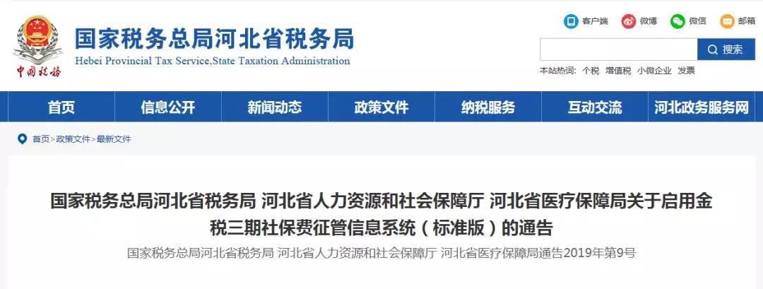 最新消息,河北省社會保險費將于11月1日起,正式由金稅三期系統征收!“社保稅征”正式拉開序幕!