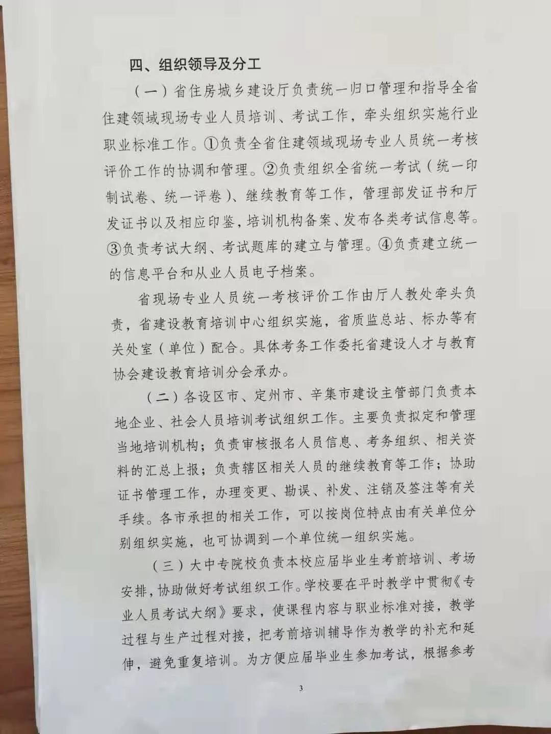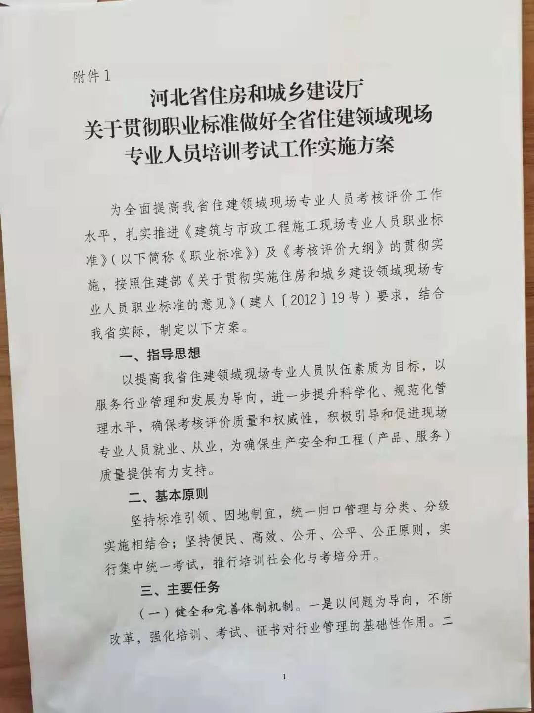 河北省住房和城鄉建設廳關于貫徹職業標準做好全省住建領域現場專業人員培訓考試工作實施方案